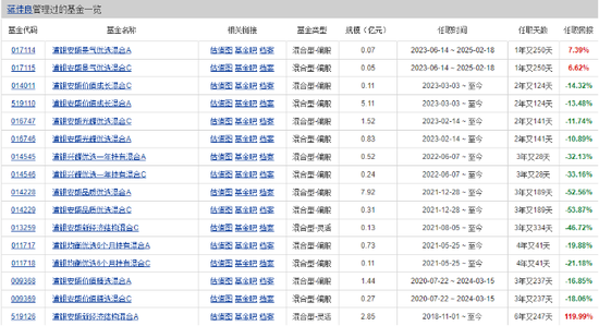 蒋佳良管理的其他产品,如浦银安盛品质优选混合C(014229 ),成立以来回报 -53.87% ;浦银安盛均衡优选 6 个月持有混合 A(011717 ),任职回报 -19.88% ,C 类份额(011718 )更是达到 -21.18% 。