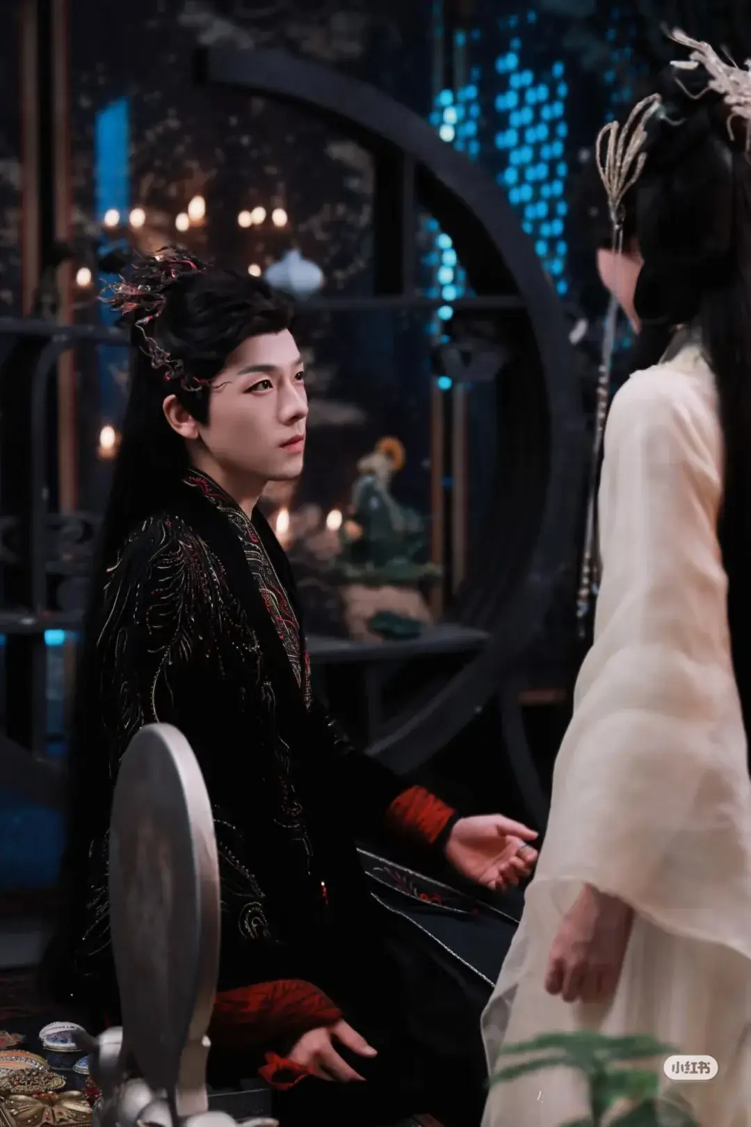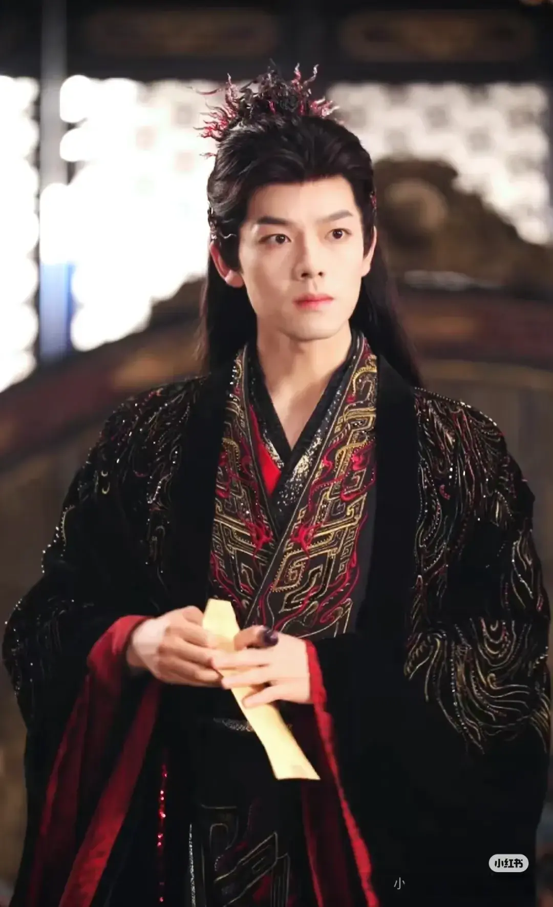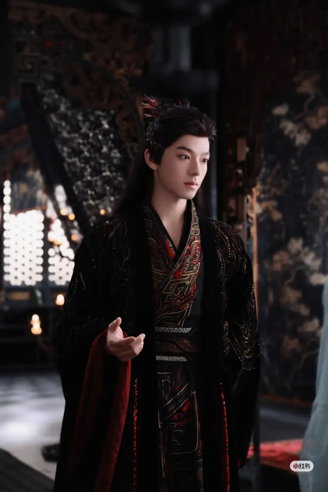 玄衣加身时,他眼神英气逼人,自带“视凡人为蝼蚁”的霸气;切换白衣造型时,又能流露温润质感,